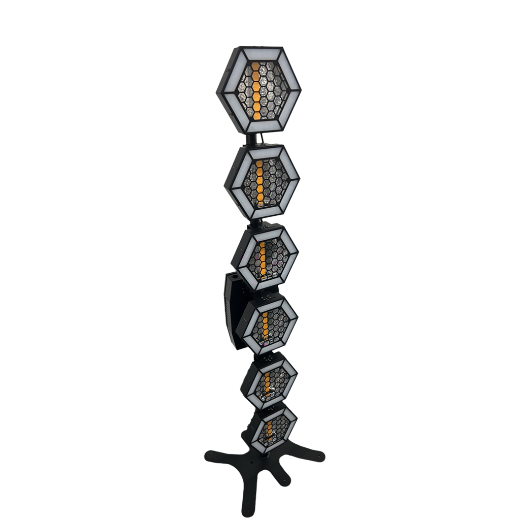 Hexaline 660 is the newest innovative products of MEGA PRO LITES .It’s equipped with 60W LED,and every lamp can be controlled each by each, has perfect 0-100% linear dimming system.It also can be used as decoration on the stage due to it’s unique retro feature